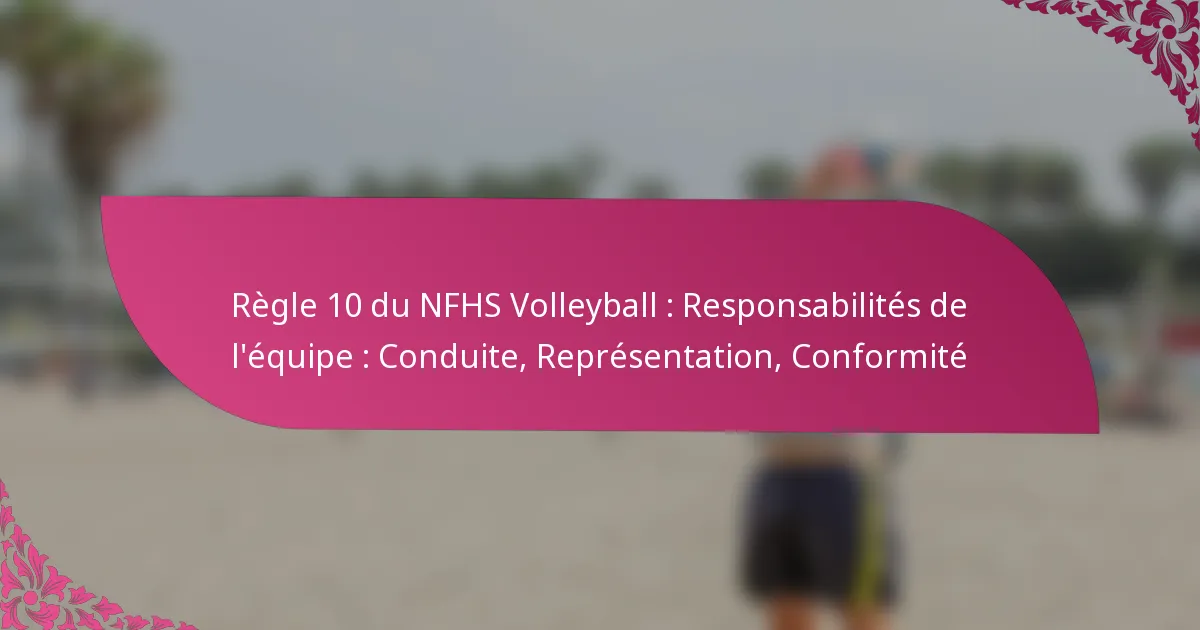 La règle 10 de la NFHS définit les responsabilités des équipes en matière de conduite, de représentation et de conformité lors des compétitions de volleyball. Comprendre ces responsabilités aide à garantir le fair-play et l’esprit sportif, tout en clarifiant les conséquences des violations.
