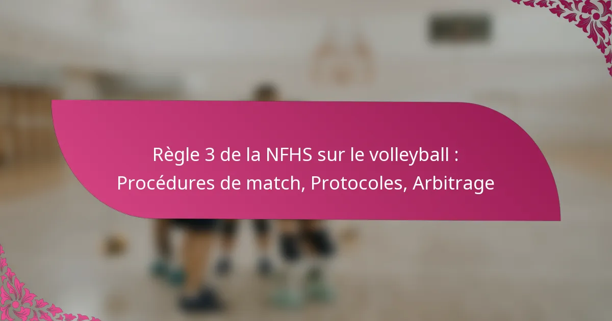 La règle 3 du volleyball NFHS décrit les procédures de match essentielles, les responsabilités des arbitres et les protocoles qui régissent le déroulement d’un match de volleyball. Comprendre ces éléments garantit un jeu fluide et le respect des règlements.